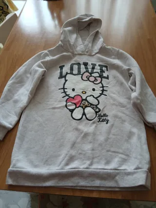 Felpa con cappuccio per bambina, color beige chiaro, con stampa LOVE e Hello Kitty. - Stampa frontale con Hello Kitty e scritta LOVE. - Tessuto morbido e confortevole. - Cappuccio integrato.