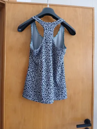 Canotta sportiva con fantasia leopardata. Ideale per l'attività fisica. - Scollo tondo. - Spalline incrociate sul retro. - Tessuto tecnico.