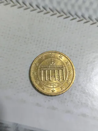 Moneta da 10 centesimi di euro della Germania, coniata nel 2020. - Dritto: raffigura la Porta di Brandeburgo. - Rovescio: rappresenta il valore della moneta e la mappa dell'Europa.