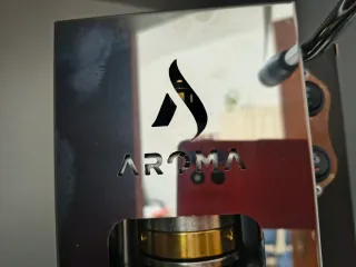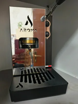 Macchina per caffè in cialde marca AROMA, con finitura in acciaio lucido, acquistata novembre 2025. Garanzia 2 anni. Confezione originale. - Design moderno. - Pannello comandi con pulsanti. - Vassoio raccogligocce rimovibile.
