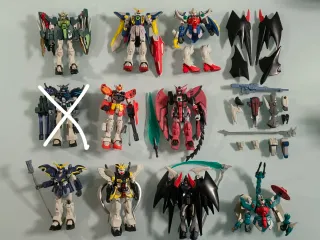 Vendo set di 9 action figure vintage della serie animata Mobile Suit Gundam Wing, anno 2000, marca Bandai, distribuito in Italia da GiG. Altezza 10 cm o 4 pollici circa, quasi in scala 1:144 High Grade (HG). Mancano diversi accessori, alcuni hanno elementi mancanti o rotti. Ideali per parti di ricambio. In più vari pezzi sfusi. Vendo anche singolarmente. Tag: Wing Gundam Ala di Fuoco Sandrock Distruttore Heavyarms Sentinella Custom Sandrock Deathscythe Hell Shenlong Dragone Nataku Altron Epyon Navigatore EW Endless Waltz Zero Tallgeese real perfect mega size jumbo RG PG master mg model kit gunpla 1995 robot mecha giocattoli gioco