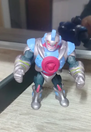 Action figure Gormiti, un personaggio dettagliato e colorato. - Design ispirato ai guerrieri Gormiti. - Dettagli in argento e blu. - Elementi rossi sul petto.