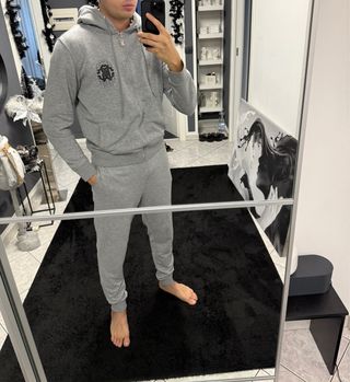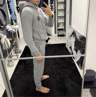 Vendo completo originale di Roberto Cavalli composto da felpa e pantaloni, colore grigio con loghi neri, taglia XL. Presenta le etichette interne e ologramma di autenticità. Le misure sono presenti nelle ultime foto #robertocavalli #cavalli #cavalliuomo #robertocavalliuomo #tuta #tutauomo #moda