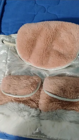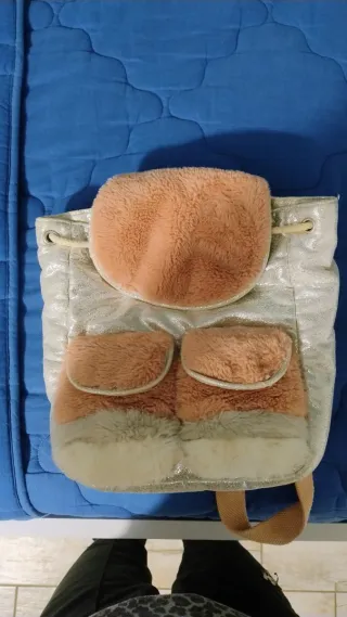 Carino zainetto per bambina, perfetto per la scuola o per il tempo libero. Realizzato con materiali morbidi e resistenti. - Dettagli in pelliccia sintetica. - Chiusura con coulisse. - Tasche frontali applicate.