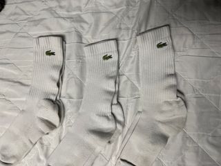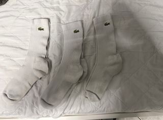 Vendo set da 3 paia di calze Lacoste bianche originali con logo ricamato. Usate, in buone condizioni generali #calze #lacoste #calzelacoste #uomo #uomolacoste #calzeuomo