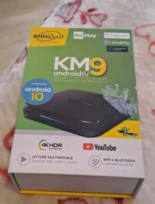 Android tv Digiquest KM9 UHD 4K. In ottime condizioni solo il telecomando ha bisogno di un po di scotch per restare chiuso ma funzionante benissimo. Non ufficiale per Netflix
