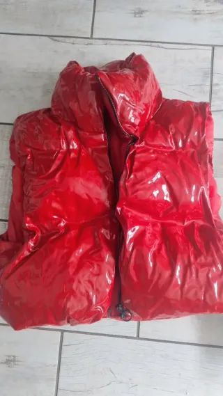 Piumino smanicato lucido rosso