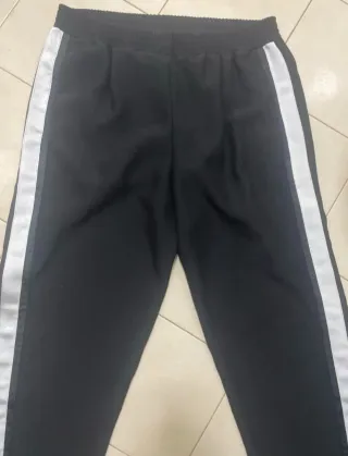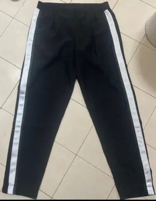 Pantaloni da donna con una banda laterale. - Colore principale nero. - Dettaglio banda laterale color bianco.