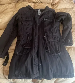 Elegante giubbotto da donna in stile militare, perfetto per completare ogni outfit. - Design con cappuccio. - Tasche multiple sul davanti. - Coulisse in vita per una vestibilità personalizzata. - Dettagli con zip e bottoni a pressione.