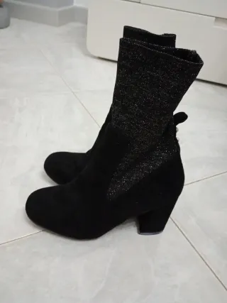 Eleganti stivaletti da donna con un design a calzino. - Tomaia in tessuto glitterato. - Dettagli in similpelle scamosciata. - Tacco comodo.
