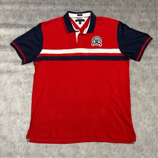 Polo Tommy Hilfiger originale modello Custom Fit. Colore rosso con maniche blu navy e banda orizzontale bianca e blu sul petto. Logo patch Tommy Hilfiger ricamato lato cuore con scritta “Since 1985”. Modello molto sportivo e old school, perfetto per outfit casual, street o estivi. 🔹 Taglia XXL (XXL/TG) 🔹 Modello Custom Fit 🔹 Logo patch ricamato 🔹 Dettaglio bandierina su manica 🔹 Colletto e maniche a contrasto blu navy 🔹 Banda frontale bianco/blu 🔴 Presenti lievi segni di utilizzo (visibili in foto). 🔴 Normale vissuto su tessuto. Condizioni buone, nessun difetto strutturale. Perfetta per look casual, streetwear e vintage style.
