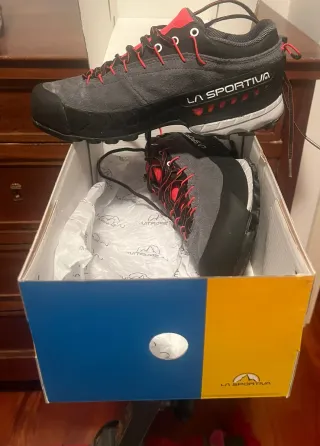Scarpe da trekking La Sportiva da donna. - Tomaia in resistente camoscio. - Dettagli rossi vivaci sui lacci e sul logo. - Suola robusta per un'ottima aderenza.