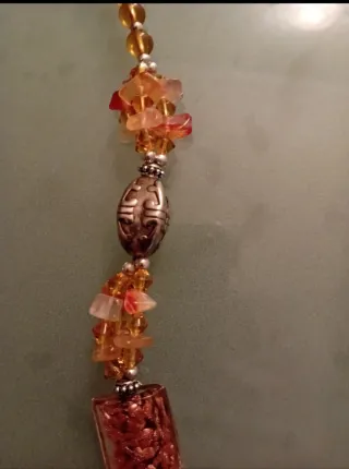 Collana lunga con perle dorate e arancioni