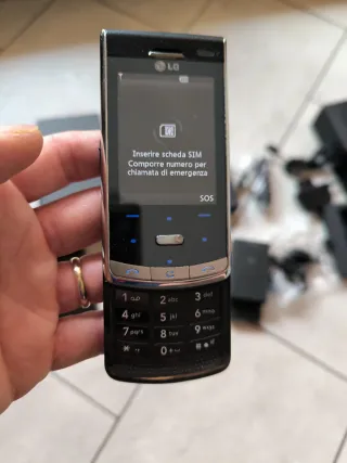 Cellulare LG KF750 con finiture argentate. - Design sottile ed elegante. - Tastiera fisica. - Schermo a colori. Completo di caricabatterie, auricolari, istruzioni, mini CD. Usato ma funzionante, la batteria usata ma ancora funzionante, e si può sostituire rimuovendo lo sportellino.