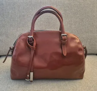 Borsa a mano in pelle di colore marrone. Brand Gianni Chiarini. Borsa a bauletto Provvista di n. 2 manici. Dettagli in metallo argentato. Chiusura a zip. Tasca interna con chiusura a zip. Dimensioni: 35 x 13 x 22 (h) cm