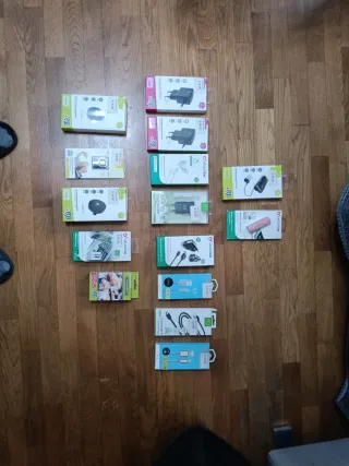 Lotto di accessori per smartphone di varie marche, principalmente Cellularline. - Caricabatterie da muro - Cavi USB - Auricolari - Adattatori - Supporti per auto - Controllo remoto per selfie Tutti gli accessori sono nuovi e mai utilizzati. Per quanto riguarda l'auricolare e la Power bank, non potendo verificare lo stato delle batterie, considerateli in omaggio.