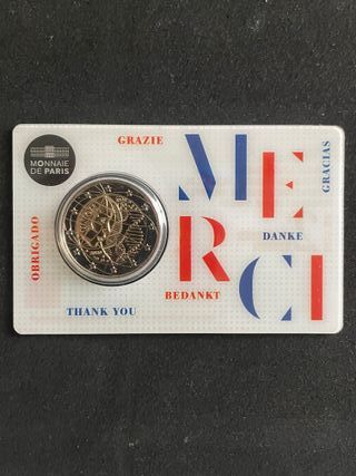 Coincard Merci della Monnaie de Paris, edizione 2020. - tiratura 310.000 pz - Moneta da 2 Euro FDC. - Design Merci con ringraziamenti in diverse lingue.