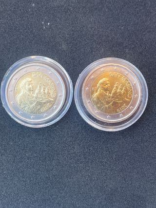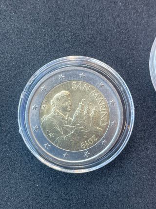 Monete da 2 Euro di San Marino del 2019. Circolata. - Dritto: raffigurante Bartolomeo Borghesi. - Rovescia: raffigurante la Terza Torri di San Marino. - Anno di conio: 2019. - tiratura 659.981 pz IL PREZZO DA INTENDERSI A MONETA