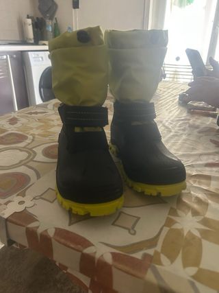 Stivali da neve per bambino, ideali per proteggere dal freddo e dall'umidità. n 35 - Colore nero e giallo fluo. - Chiusura con velcro. - Suola antiscivolo. pantaloni e giacca tg 10 anni