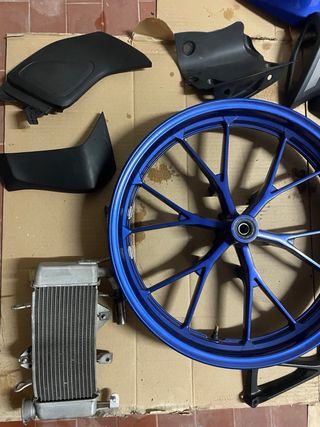 Smembro Yamaha MT-125 del 2020. I pezzi sono originali: • Carena destra serbatoio blu (60€) • Carena sinistra serbatoio blu (VENDUTA) • Cerchio anteriore blu (80€) • Radiatore con ventola (90€) • Forcella (1 stelo + piastra sterzo) (120€) • Plastiche codino (coppia 40€) • Plastica fianchetto “125” (20€) •Staffa pedalina passeggero sx (10€) •Mascherina faro anteriore (25€) •Plastiche varie e targhetta “MT” (5€ a pezzo) Se acquisto in blocco 400€