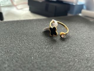 Elegante anello da donna con design a fiore. - Finitura in oro. - Dettaglio centrale nero. - Misura regolabile.