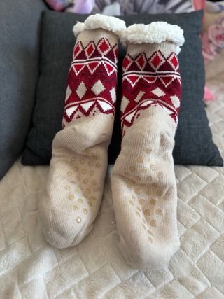 Calze invernali morbide e calde, perfette per le giornate fredde. Il design a rombi e zig-zag le rende un accessorio alla moda. - Fodera interna in pile per un comfort extra. - Design a rombi e zig-zag. - Bordino superiore in morbida pelliccia sintetica.