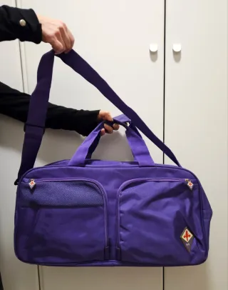 Borsone sportivo con logo Fiorentina. - Colore viola acceso. - Due tasche frontali con zip. - Tracolla regolabile e manici. - Logo ricamato sul davanti. - Prodotto ufficiale ACF Fiorentina