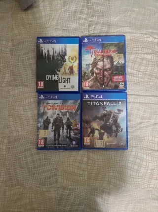 Set ps4: - Dying Light [CUSA02010] Lingua Audio: Multilingua Lingua Testo: Multilingua - Dead Island Definitive Edition [CUSA03291] Lingua Audio: Inglese Lingua Testo: Multilingua - Titanfall 2 [CUSA04013] Lingua Audio: Multilingua Lingua Testo: Multilingua - Tom Clancy's The Division [CUSA01262] Lingua Audio: Multilingua Lingua Testo: Multilingua - Until Dawn [CUSA00194] Lingua Audio: Multilingua Lingua Testo: Multilingua Tutti Regione: Europa Tutti Contengono: - Disco di gioco Usati, in ottime condizioni I Codici DLC (se presenti) potrebbero essere già ri