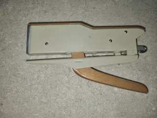 Spillatrice Zenith modello 548/E. - Colore grigio e manico dorato. - Include una scatola di punti Zenith (10.000 punti). Spillatrice Vintage perfettamente funzionante e in perfetto stato