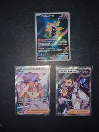 Lotto di carte Pokémon dall'espansione Paradosso Temporale. - 1x Falenaferrea (Base) - 1x Tulipa (Aiuto Allenatore) - 1x Scenario del Professor Turum (Aiuto Allenatore) Condizioni come da foto NM