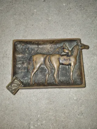 Elegante posacenere vintage in bronzo, raffigurante due cavalli. - Design unico con scena equestre. - Dettagli finemente lavorati. Condizioni come da foto