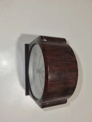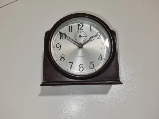Sveglia da tavolo in stile vintage, con cassa in materiale scuro e quadrante chiaro. - Design classico. - Numeri arabi ben leggibili. - Lancette sottili Da revisionare