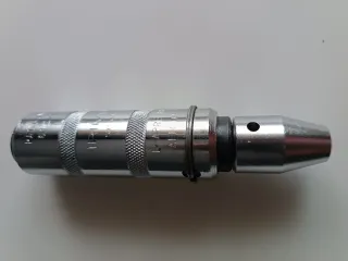 Strumento manuale per l'estrazione di liquidi. Corpo metallico argentato. Impugnatura nera. Tubo curvo per l'accesso.