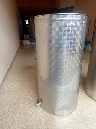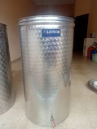 Bidón in acciaio inossidabile della marca Lainox, con una capacità di 200 litri. Ha un piccolo colpo che non influisce sul suo funzionamento, vedere fotografia 2. Materiale: acciaio inossidabile. Capacità: 200L. Marca: Lainox. Adatto per uso alimentare.