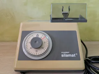 In vendita miscelatore vibrante per capsule (amalgamatore) della rinomata marca Vivadent, Silamat S3. Prodotto in AUSTRIA. ➡️STATO: Funziona senza problemi. È un apparecchio molto robusto e affidabile. A differenza di altri usati, questo conserva il coperchio protettivo di sicurezza originale intatto e il forcellone di fissaggio perfetto. 🔆USO: Sebbene sia un classico per amalgame, oggi è indispensabile in clinica per la miscelazione di capsule di ionomero di vetro e cementi. ✅Ideale per clinica dentale, podologia o veterinaria che cerchi un apparecchio duraturo. Si può provare senza impegno.