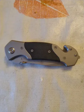 Lame per salvataggio con design robusto e funzionale. - Manico in metallo e gomma. - Lama in acciaio. - Rompivetro integrato. - Tagliacinture di sicurezza.