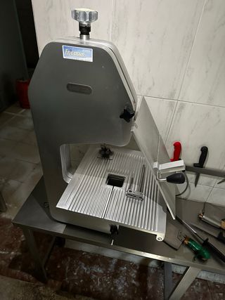 Sierra de huesos professionale per macelleria. In acciaio inossidabile. In perfette condizioni e con un set di lame nuove. Prezzo negoziabile.