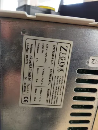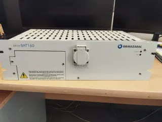Caricabatterie per batterie a media tensione del marchio Ormazabal, modello ekorBAT160. Prodotto da Zigor. Uscita di 12 e 48 V CC. Praticamente nuovo. Presa ausiliaria da 230 V CA, max. 100 VA. Indicatori LED per 'Delecto' e 'Root'.