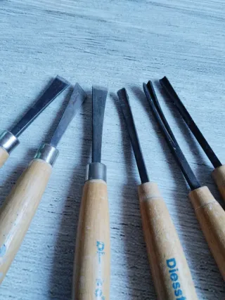 Set di lime con manici in legno, ideali per lavori di intaglio. - Manici in legno. - Lame di metallo affilate.