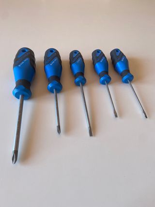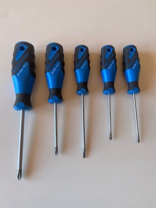 Set di cinque cacciaviti del marchio Gedore. Include cacciaviti a stella e piatti. Nuovi da aprire. - Cacciavite Phillips PH2 (2160-PH 2) - Cacciavite Phillips PH1 (2160-PH 1) - Cacciavite piatto 4mm (2150-4) - Cacciavite piatto 3.5mm (2150-3.5) - Cacciavite piatto 3mm (2150-3)