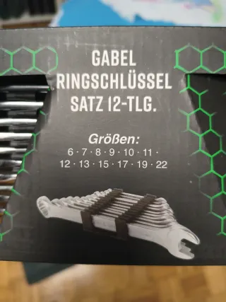 Set di 60 chiavi fisse combinate della marca Mannesmann. Include chiavi a forcella e a anello. Realizzate in acciaio al cromo vanadio, conformi alla norma DIN 3113. Ogni scatola contiene 12 pezzi. Garanzia di 10 anni. Alcune potrebbero presentare lievi segni per essere state in esposizione.