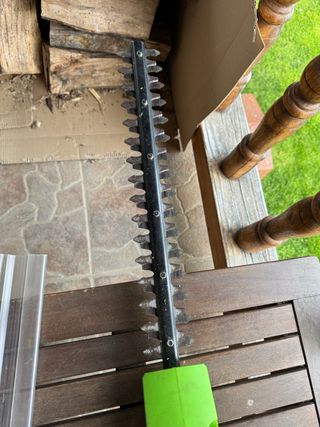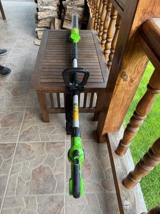 Tagliasiepi elettrico a batteria a lungo raggio del marchio Cofan. Ideale per mantenere i tuoi siepi e arbusti in perfette condizioni. Design estensibile per un maggiore raggio d'azione. Impugnatura ergonomica per una presa comoda. Tagliasiepi a batteria telescopico a lungo raggio con struttura in alluminio. Testa con 7 posizioni. 1400 tagli al minuto. Utilizzato solo due volte.