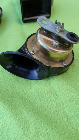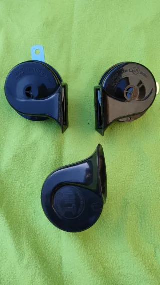 Set di 3 Claxson. - Clacson a tromba. - Colore nero. - Materiale plastico.