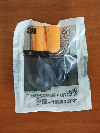 Protettivi acustici in schiuma poliuretanica ipoallergenica 3M serie 1100 secondo la norma EN 352-2:2002. Riduzione di 35dB. Confezionati nelle rispettive buste. Vengono forniti 5 paia di altre marche.