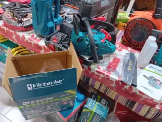 Kit di potatura elettrica con due batterie ricaricabili. - Motosega - Forbici ✂️ - Asta telescopica - Lampada da lavoro - Due batterie Li-ion da 2.0Ah. - Caricabatterie incluso. - Strumento per potatura.