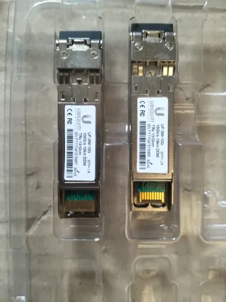 Set di due ricetrasmettitori Ubiquiti UF-SM-10G. - Modello: UF-SM-10G SFP+ LR - Velocità: 10Gb/s - Distanza: 10km - Lunghezza d'onda: 1310nm - DDM (Digital Diagnostics Monitoring)