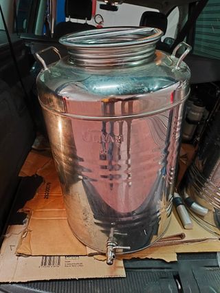 Set di due contenitori in acciaio inossidabile da 50 litri ciascuno, ideali per la conservazione dell'olio. Roma. Zona villa Gordiani/largo Preneste. ritiro a mano. 110€ tutti e due. Singolo 60€. - Materiale: acciaio inossidabile. - Capacità: 50 litri per contenitore. - Dotati di rubinetto per un facile prelievo.