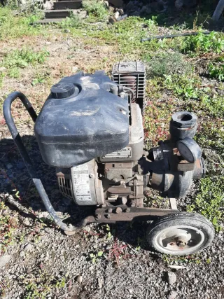 Motopompa per irrigazione, ideale per giardini e piccoli appezzamenti. - Motore a scoppio. - Struttura robusta con ruote per il trasporto.