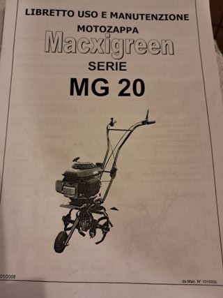 Libretto uso e manutenzione per motozappa Macxigreen. - Modello: Serie MG 20 - Data: 01/2008 - Matricola: N° 1015000