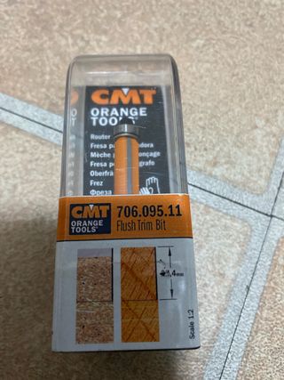 Fresa per router CMT Orange Tools, modello 706.095.11. - Tipo: Flush Trim Bit - Diametro cuscinetto: 9,5 mm - Diametro gambo: 6 mm - Lunghezza tagliente: 12,7 mm - Lunghezza totale: 50 mm